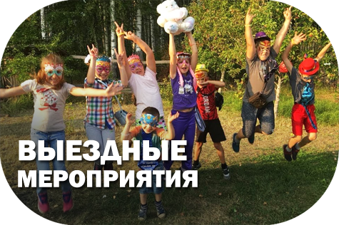 Также, мы с радостью проводим выездные праздники. Приедем куда угодно – на дачу, в детский сад, в кафе, квартиру – любая площадка. Просто позвоните, и мы договоримся о дате и месте проведения! Телефон: +7(901)344-28-48